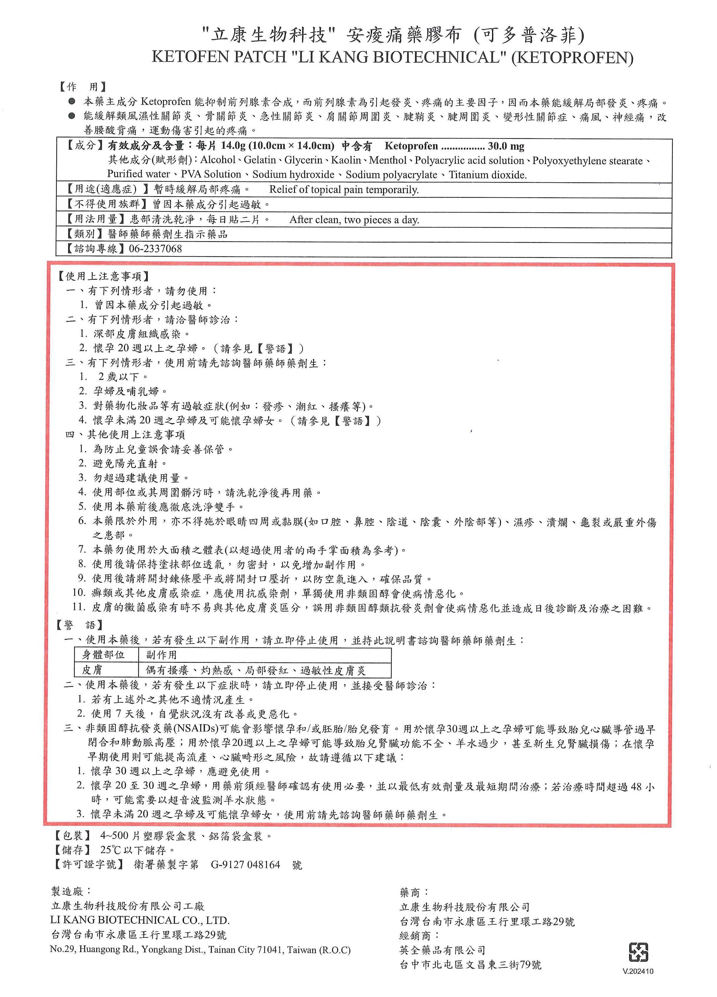 "立康生物科技" 安痠痛藥膠布(可多普洛菲)