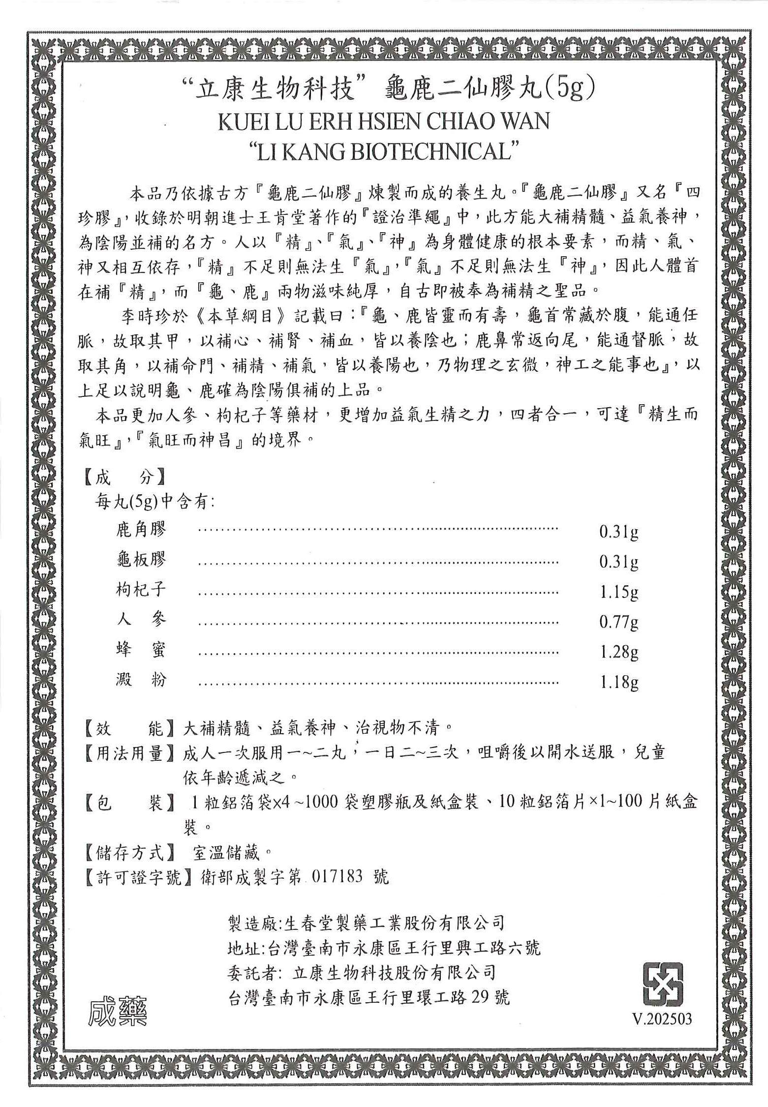 “立康生物科技”龜鹿二仙膠丸