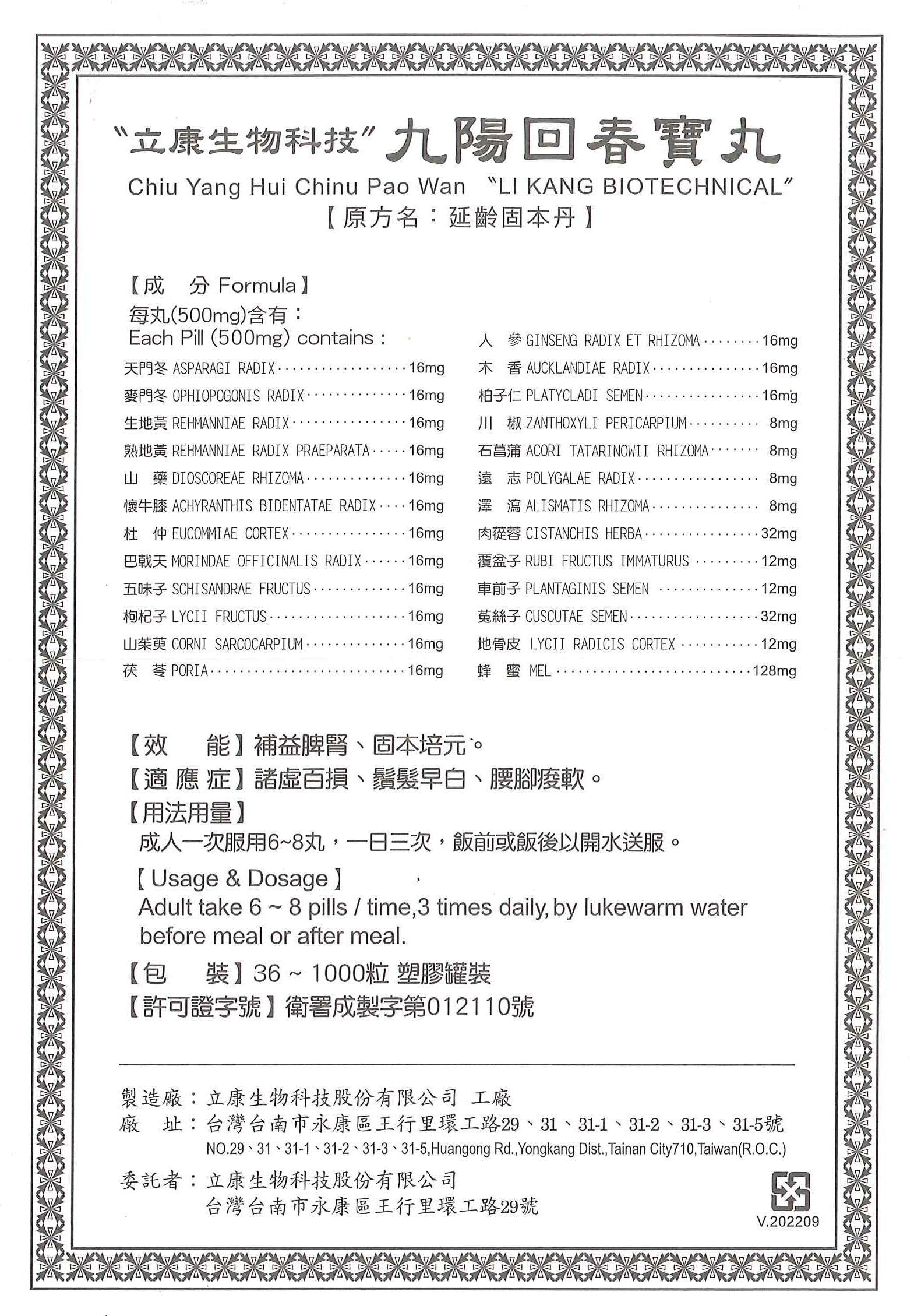“立康生物科技”九陽回春寶丸(延齡固本丹)