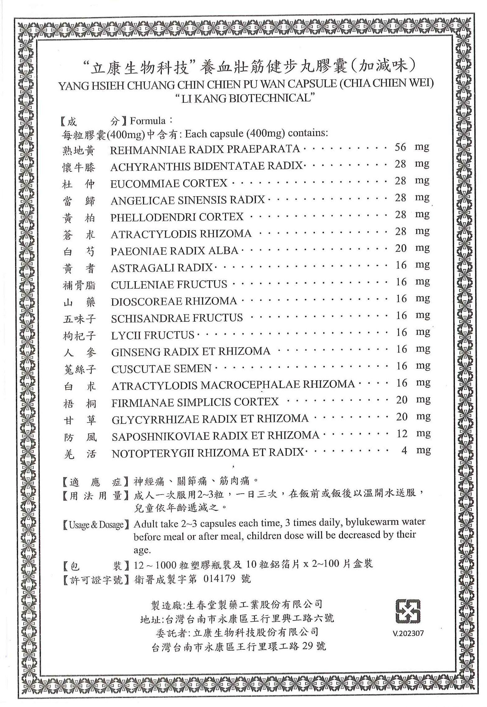 〝立康生物科技〞養血壯筋健步丸膠囊(加減味)