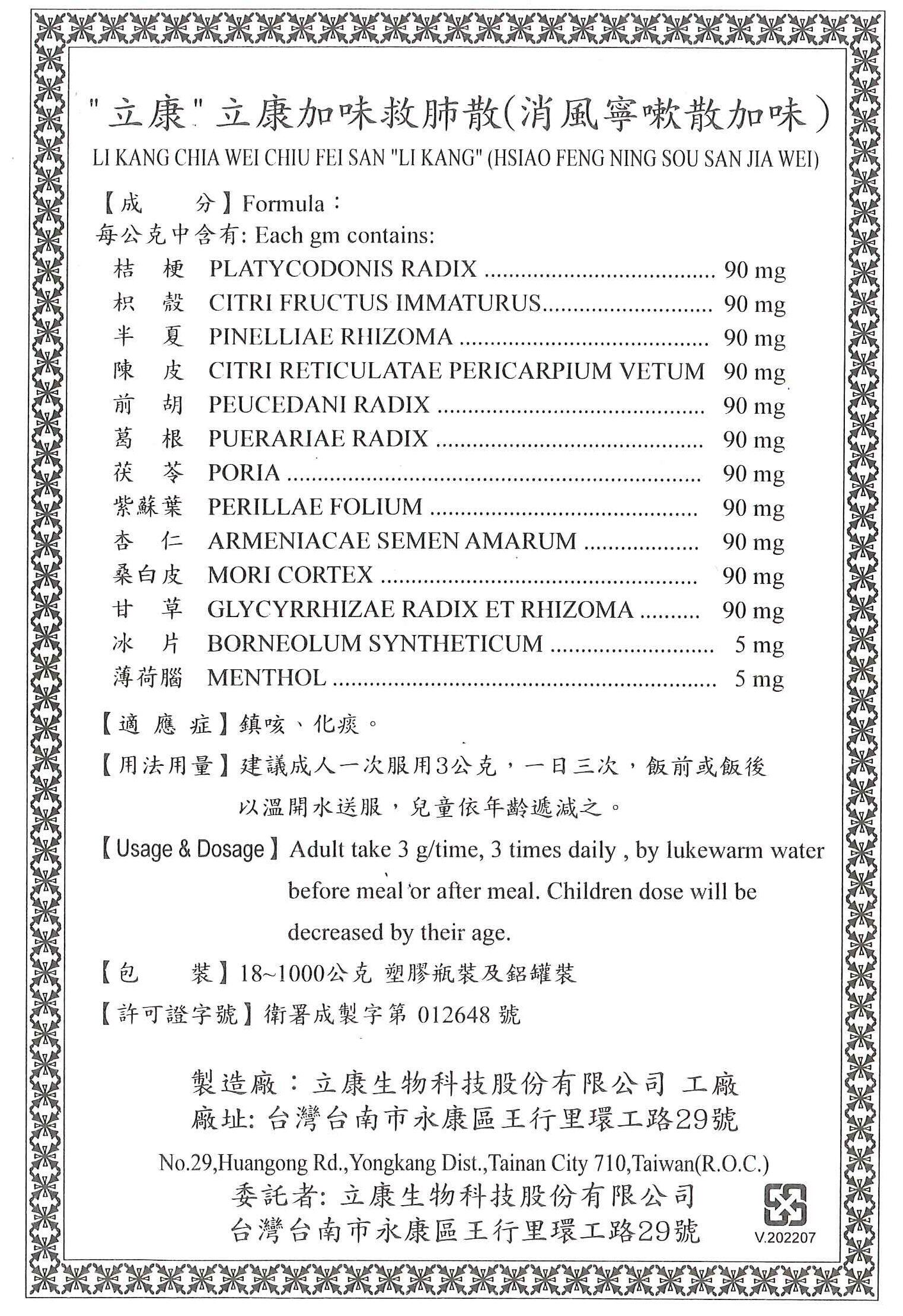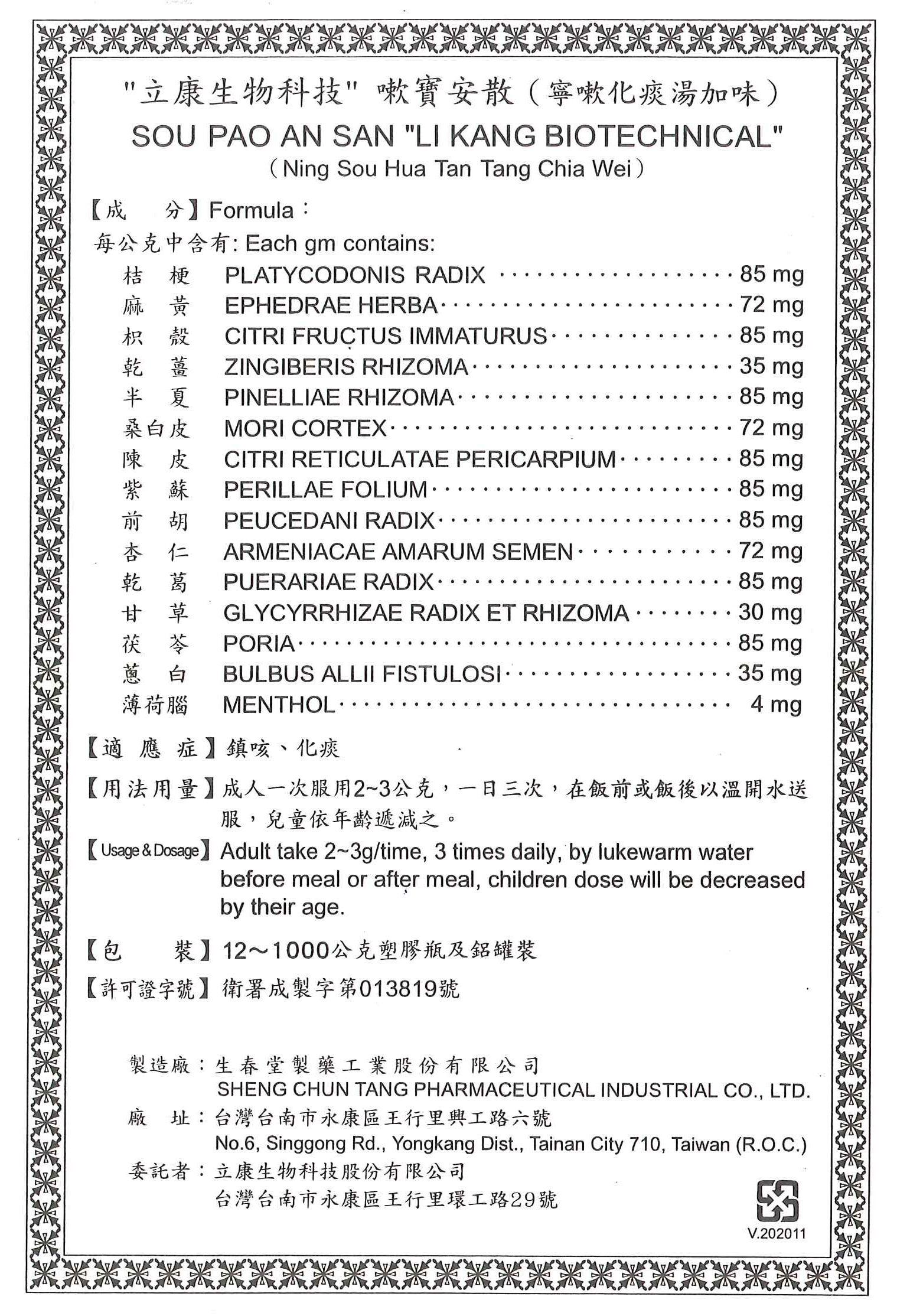 “立康生物科技”嗽寶安散(寧嗽化痰湯加味)