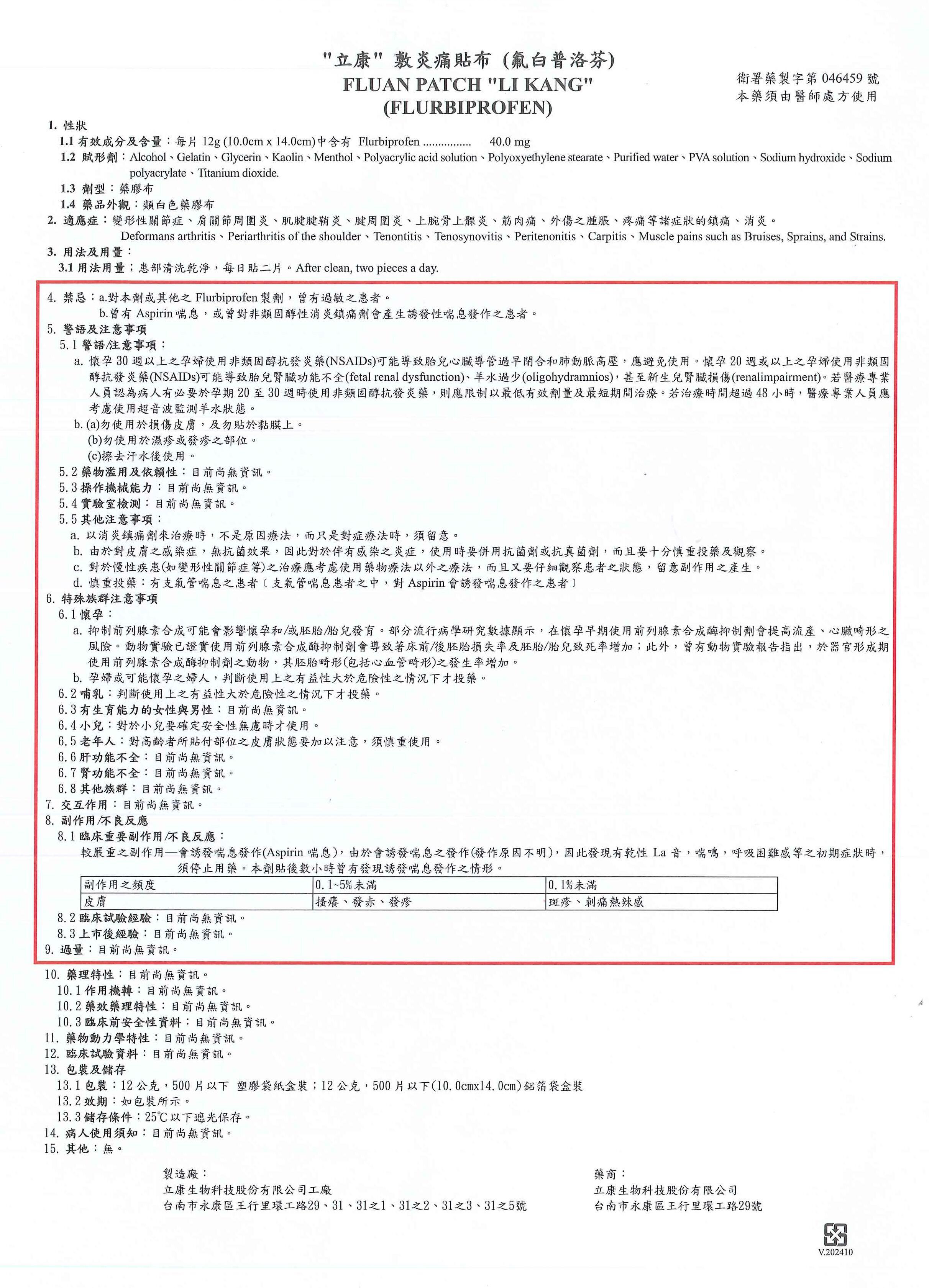 "立康生物科技" 安痠痛藥膠布(可多普洛菲)